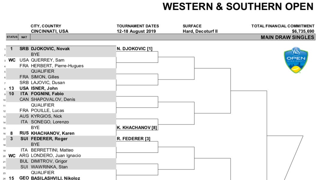 There are 15 players of the Top 20 of the ATP Rankings in the main draw of ATP Cincinnati Masters. Cincinnati Open 2021 Draw Pdf. Get all the latest WTA Western Southern Open 2022 Draws results and more.